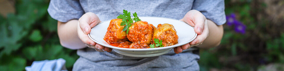 Bucătăria românească. Astăzi preparăm ardei umpluți cu carne și orez în suc de roșii pentru un prânz minunat. O mâncare pentru un prânz complet! Masa elegantă , pălinca unică românească sau vinul de culoare rubinie fără să uităm de ospitalitatea românească! Pregătim. Alegem ardei după culori( galben, roșu- 10 ardei), adăugăm 1 kilogram de carne măcinată( porc, vițel), orez( 60 g), suc de roșii( 2 litri), 2 cepe, 3 morcovi, pătrunjel, piper, frunze de dafin sare și ardei iute. Fără să ne obosim prea mult , curățăm ardeii de semințe și îi punem la scurgere, în timp se frige în ulei ceapa tăiată cu carnea , orezul , condimentele adăugând 30 ml de suc de roșii. Totul este făcut! Dar , încă mai avem de preparat. Nu este complicat, voi ce gândiți? După toate astea se prepară o tavă pentru cuptor. Se pun ardeii umpluți cu partea în sus acoperindu-se cu suc de roșii și foi de dafin. Se țin la cuptor pentru coacere circa 30 minute  la 200 de grade.  Totul e terminat! Poftă bună! Sunt pentru toți!
